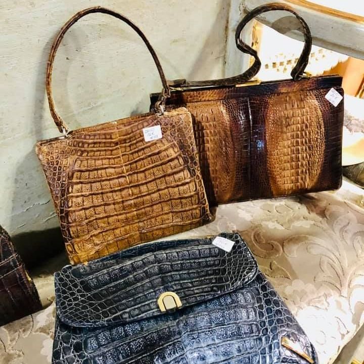 Dans notre brocante, la friperie propose aussi des sacs, des portefeuilles et bien d'autres accessoires en cuir ou en tissu de haute qualité, provenant de différentes périodes.